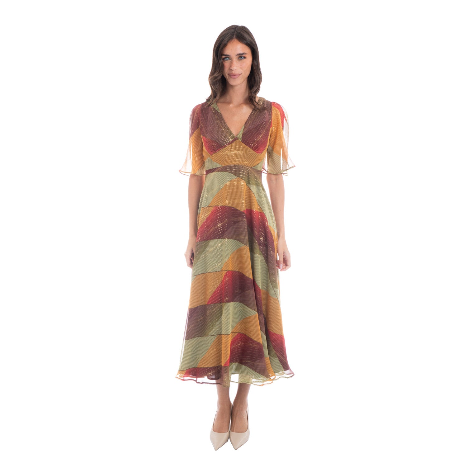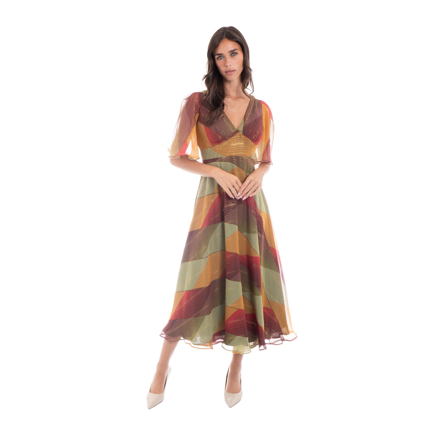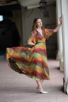A romantic dress handmade of pure multicoloured Italian silk chiffon. This gown is more than eveningwear—it’s an experience of power, poise, and poetic elegance, designed for the woman who commands every moment.