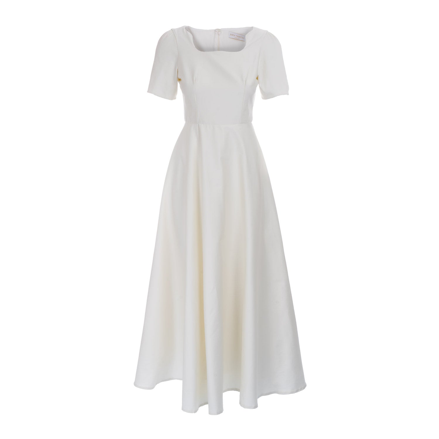 Its beautiful, romantic silhouette is distinguished by Sofia Tsereteli’s signature unique neckline—an exclusive detail that sets designers creations apart as truly one of a kind. The fitted bodice is expertly tailored to flatter and enhance your natural curves, accentuating the waist and creating a breathtaking, sculpted silhouette.