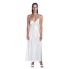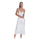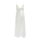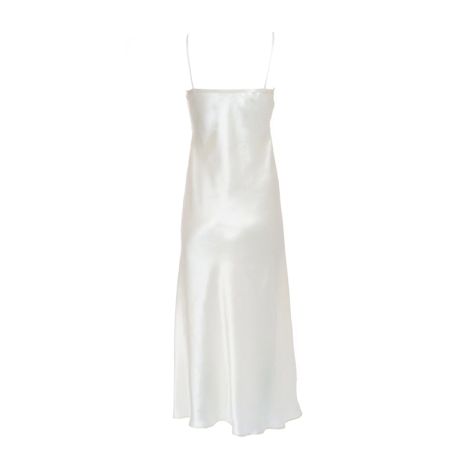 This exquisitely feminine lingerie slip is created in the softest ivory white silk satin. With delicate shoulder straps, a V-neckline and softly fitted at the breast. Ankle length and slim fit. For a perfect look combine the slip with our silk robe with watercolor motif.