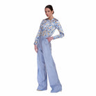 Fall in love with this pure silk blouse in our delicate ‘Little Blue Garden’ print. Long sleeves are smooth at the shoulder and curled at the wrist with an 8cm cuff with 3 hand-covered buttons in the same delicate fabric. With soft lines and a round neckline, the blouse has an opening on the center back with 2 fabric covered buttons. Ideal with other Sofia Tsereteli skirt and trouser designs to create a total look.